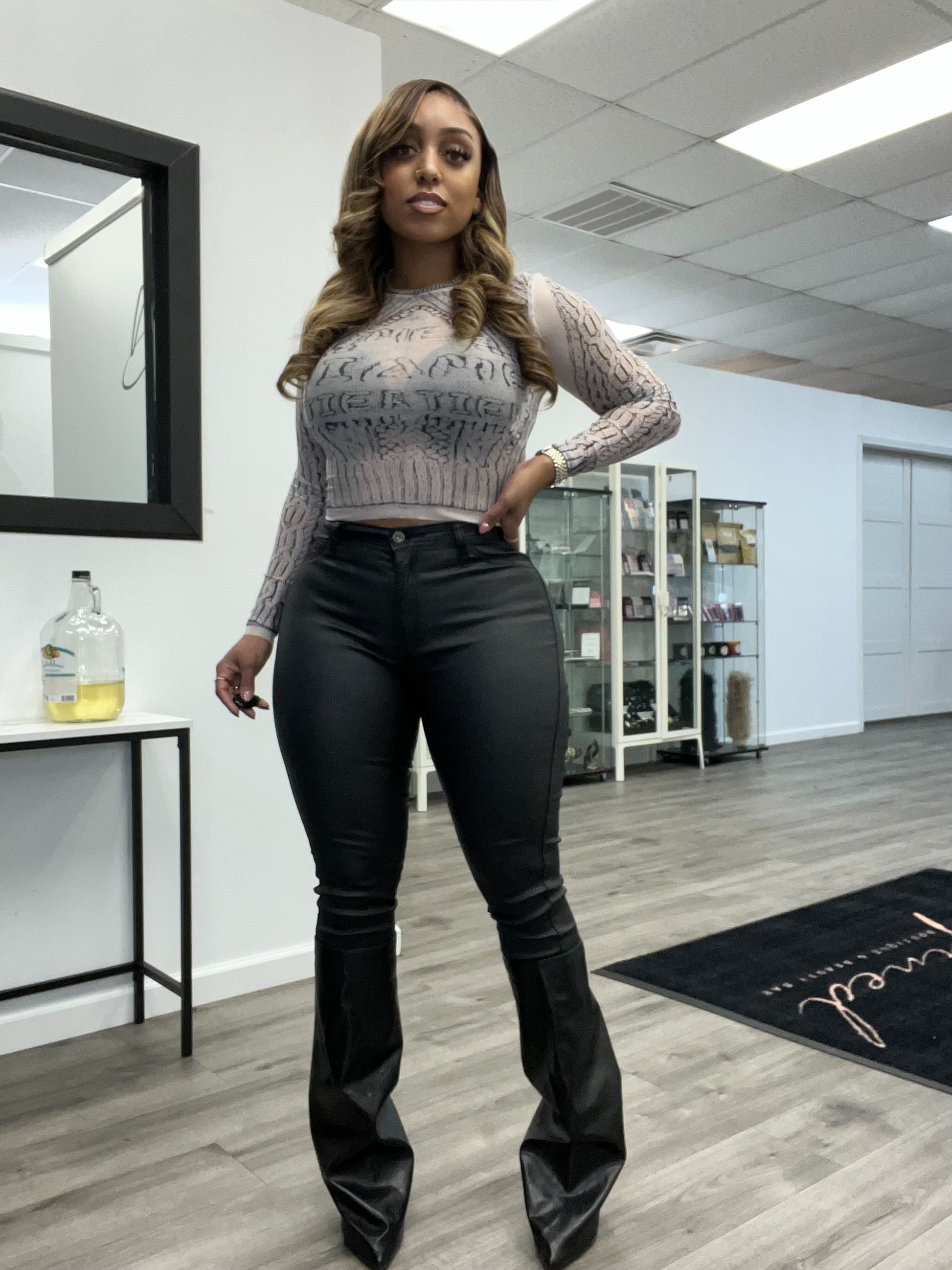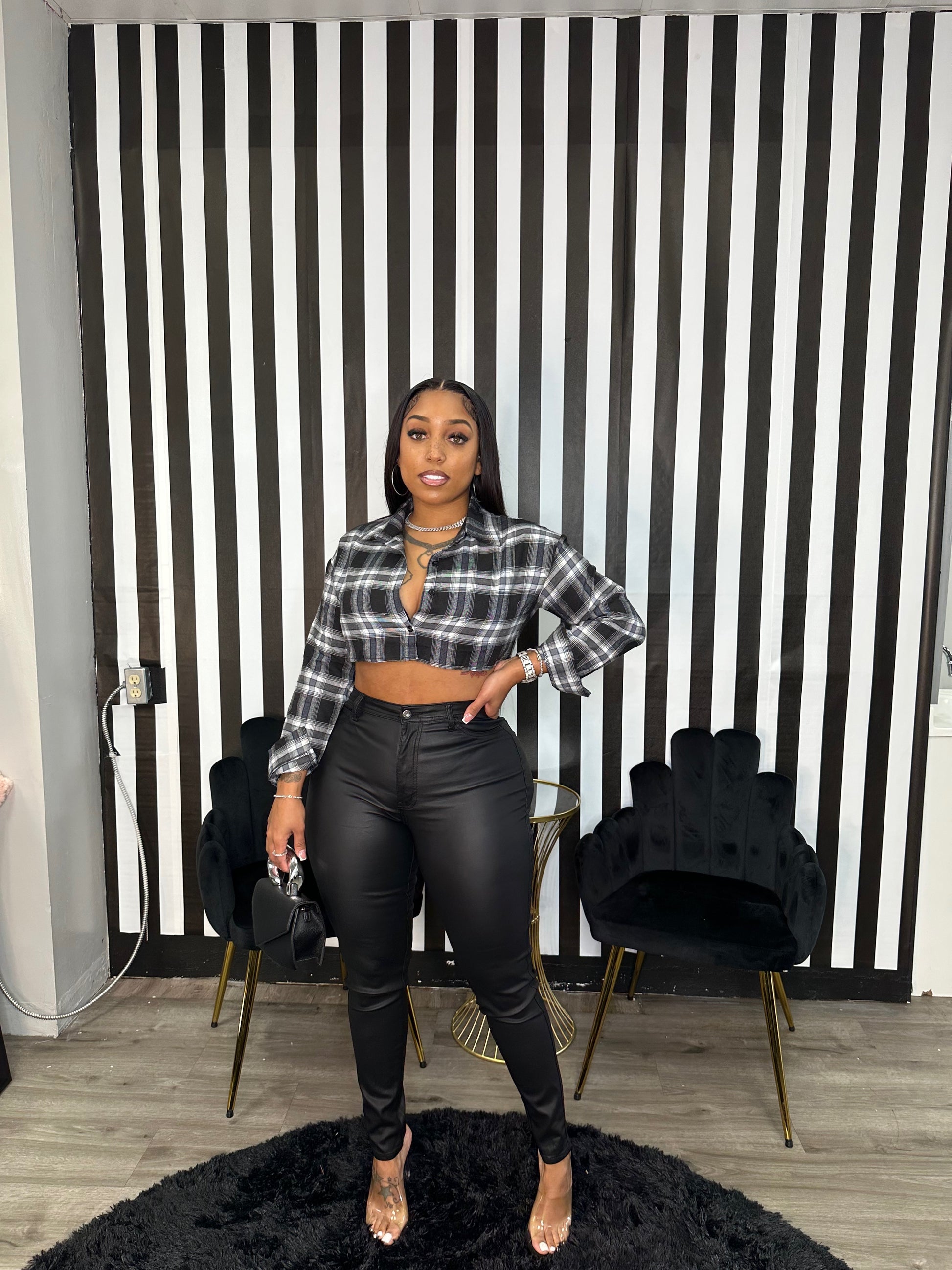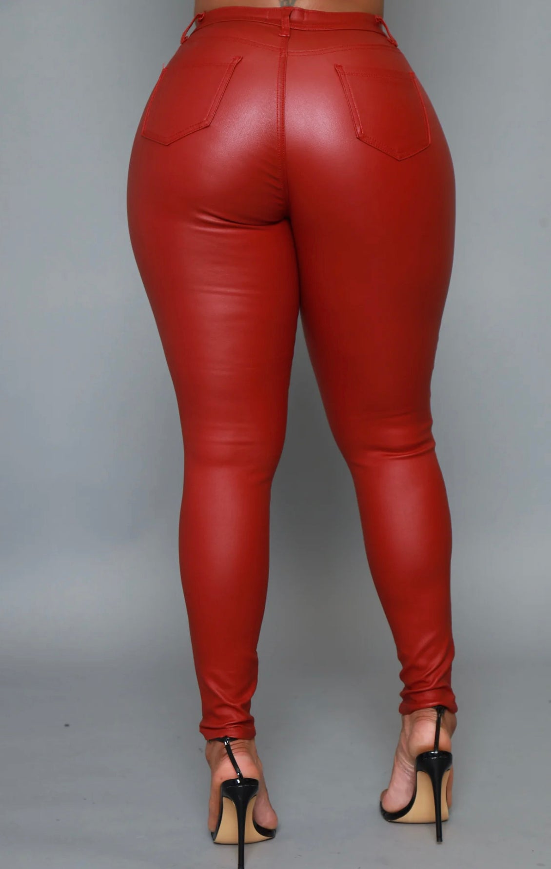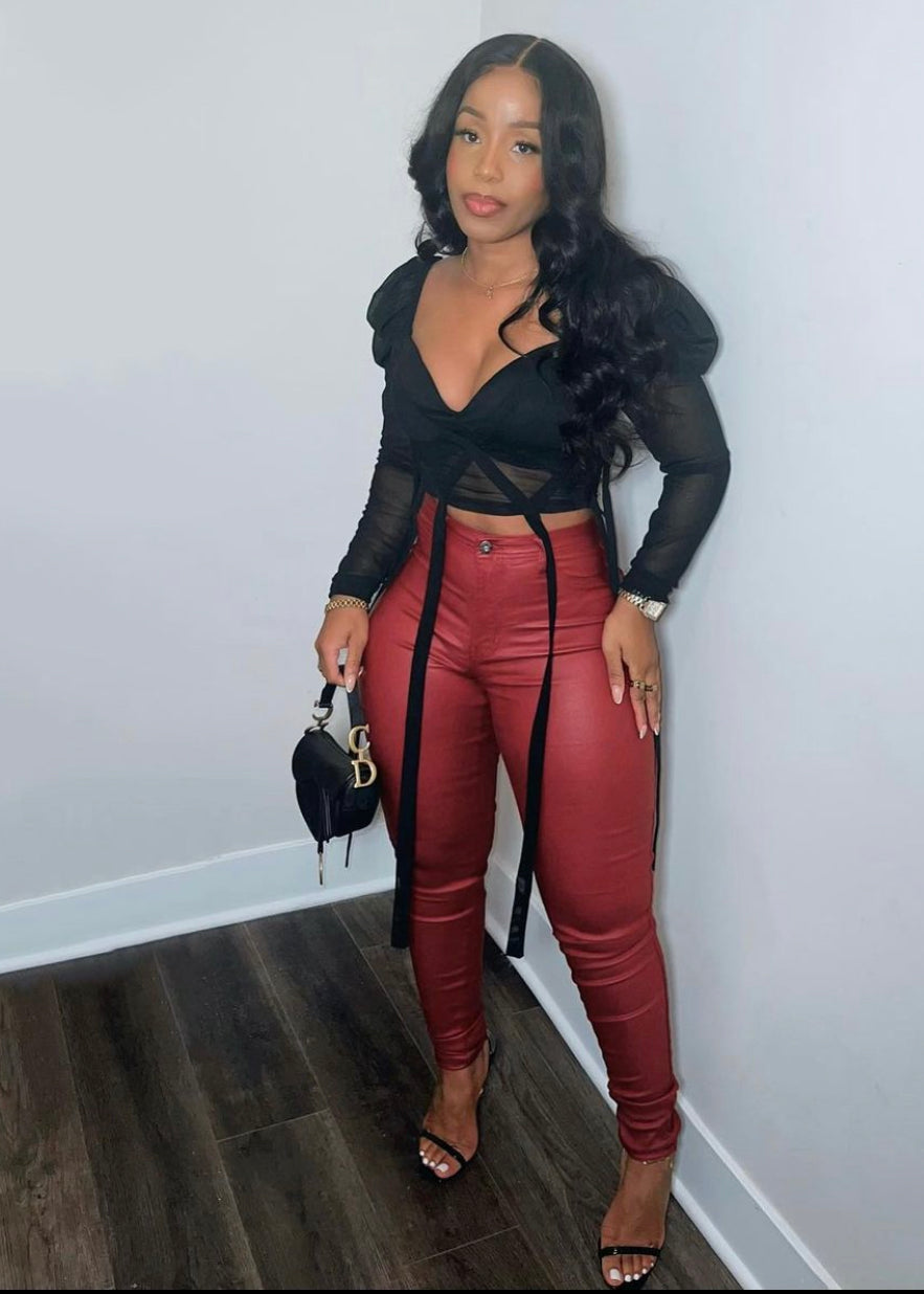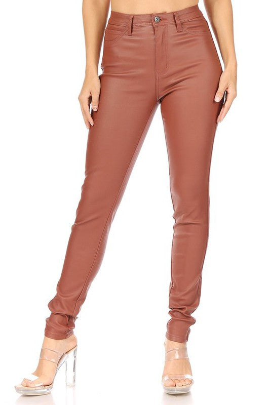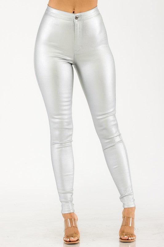 Coated black high rise stretch skinny pants.