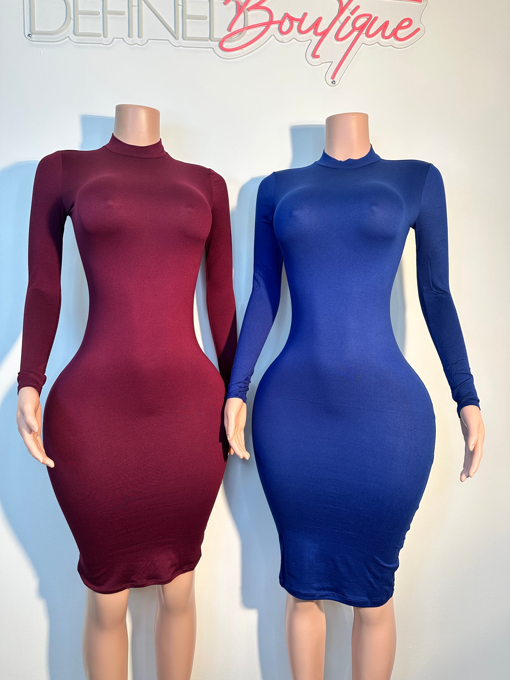 Crew Neck Long Sleeve Knee Length Knit Midi Dress - Crew neck - Long sleeve - Bodycon fit