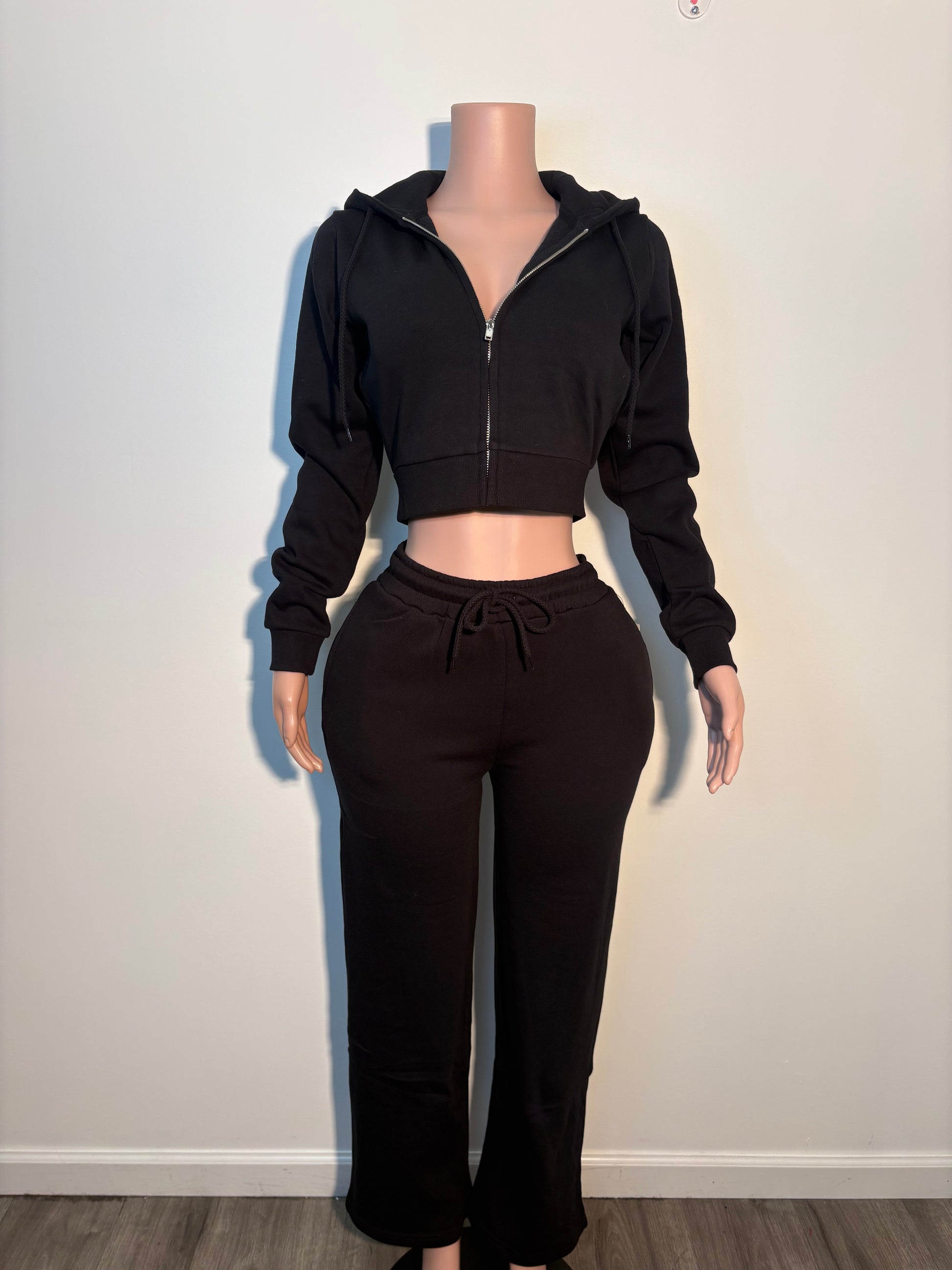 FLEECE RELAX FIT CROP ZIP UP HOODIE & FLEECE STRAIGHT LEG HIGH-RISE JOGGER