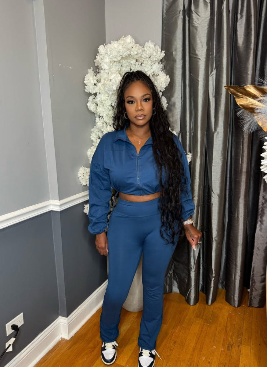 PANTS SET -2 PIECE -ZIP UP HACKET WITH WASIT DRAWSTRINGS -ELASTIC WAISTBAND
