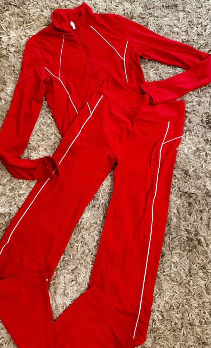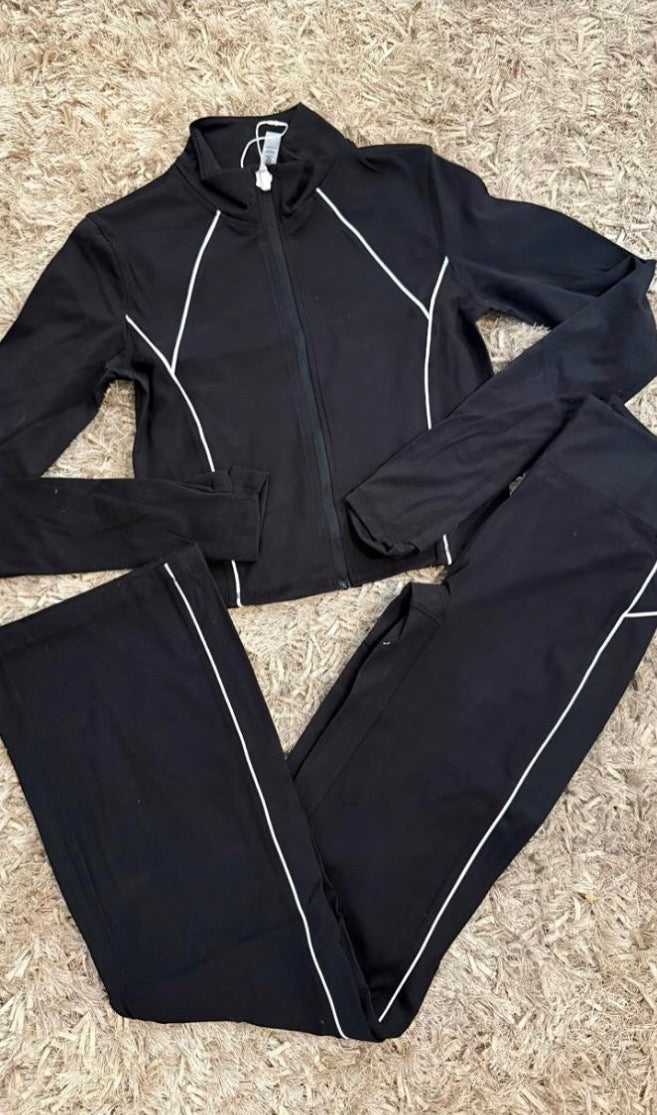 LONG SLEEVE PIPING DETAIL ACTIVE WEAR JACKET & WAIST BAND CONTRAST PIPING DETAIL WORKOUT PANTS
