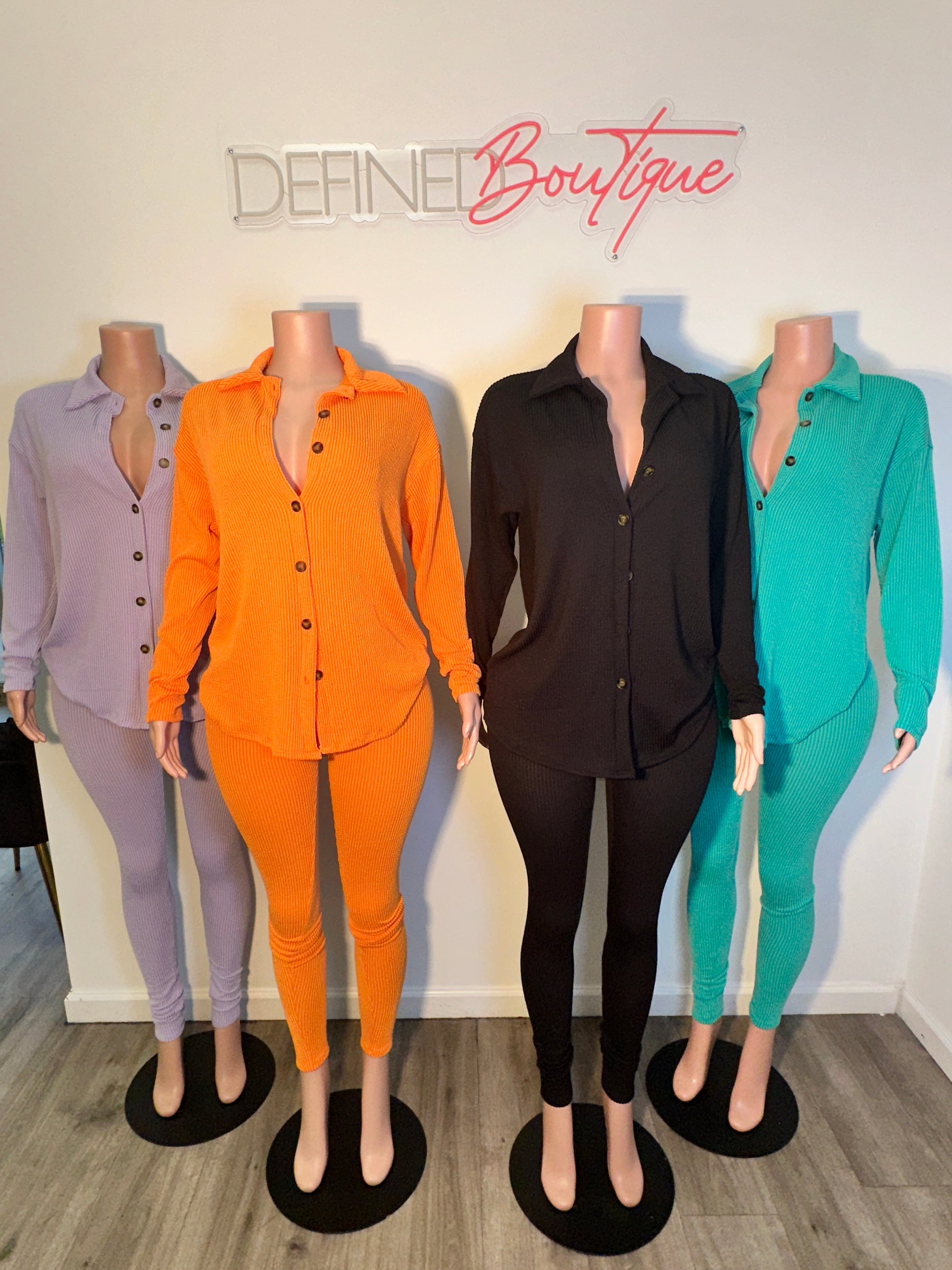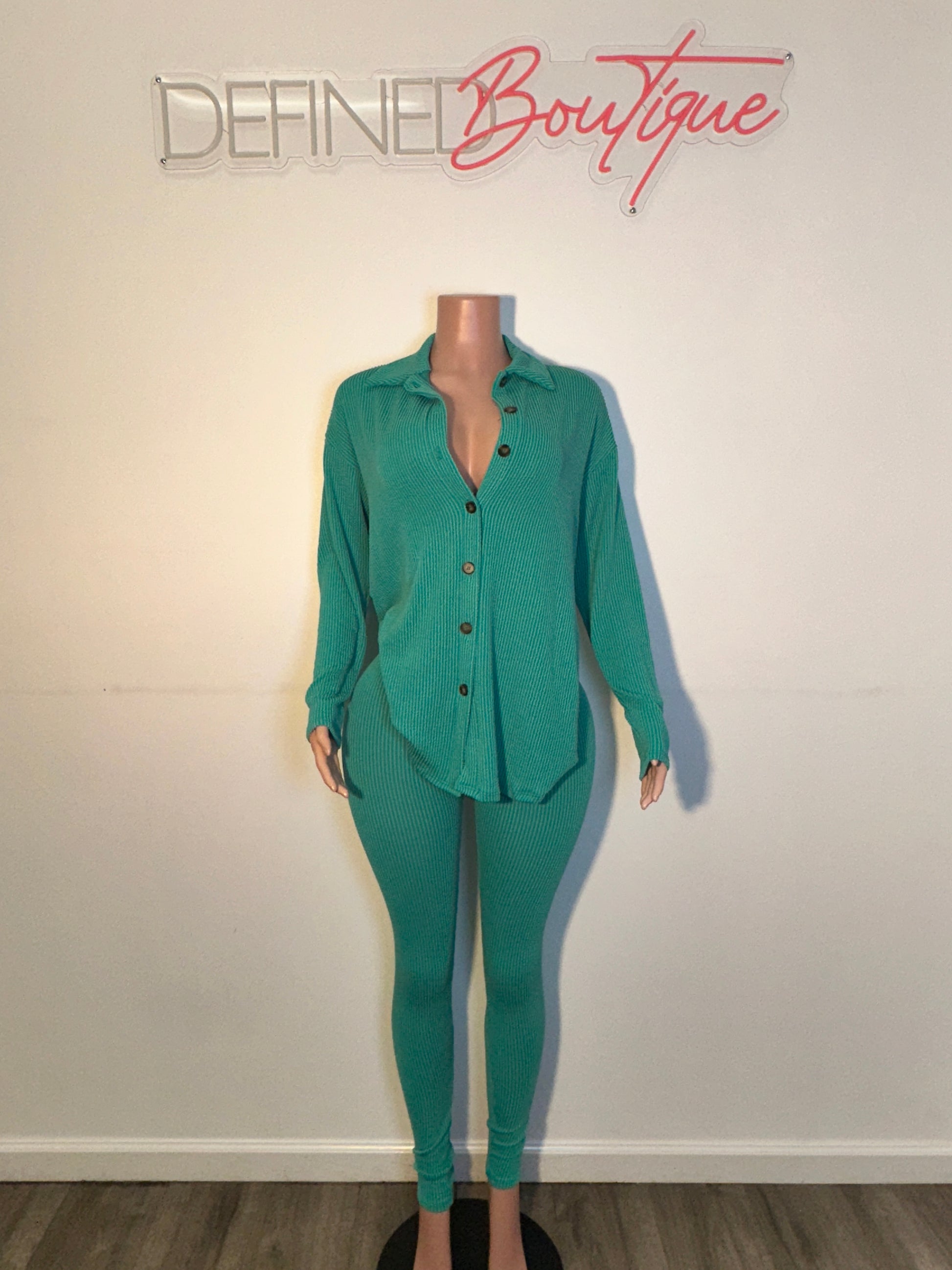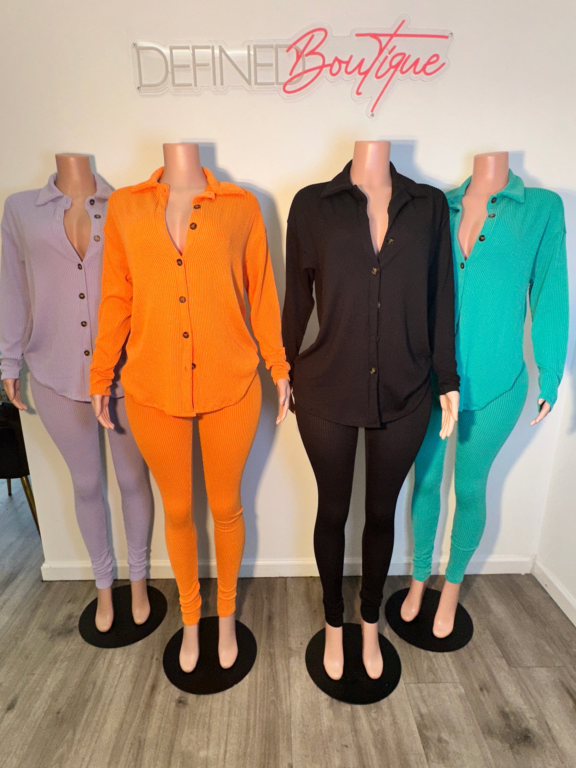 rib legging set button up collar shirt and rib legging