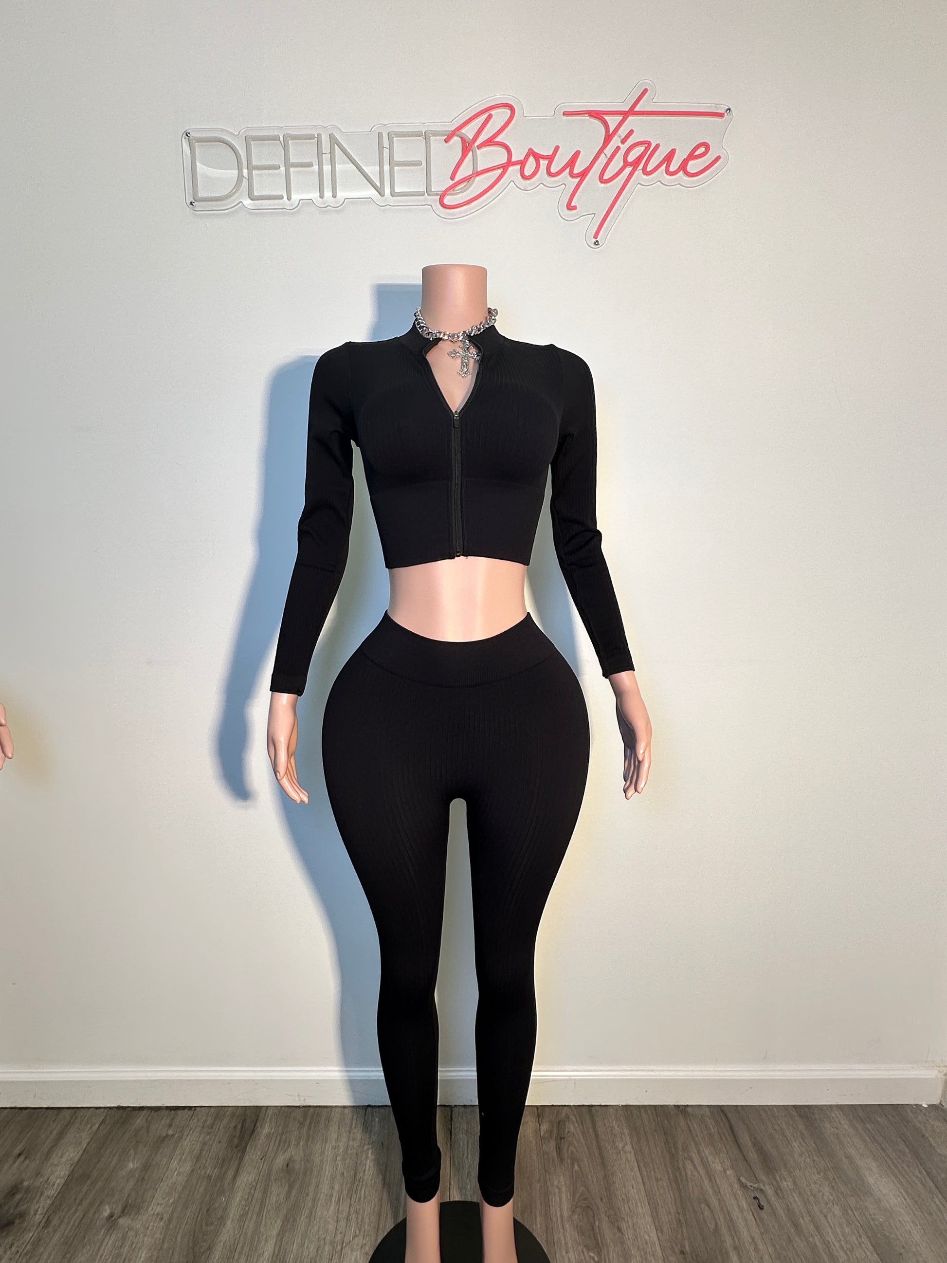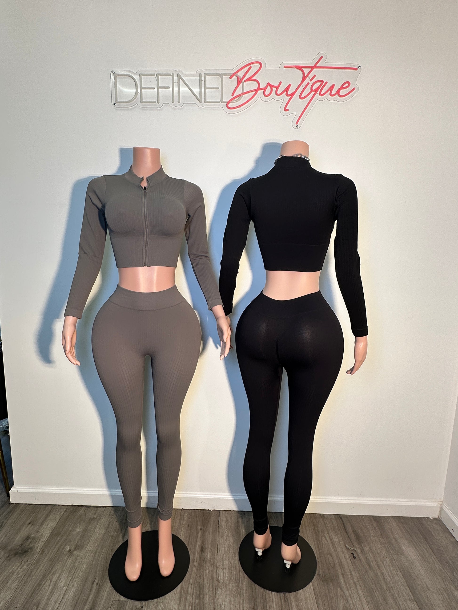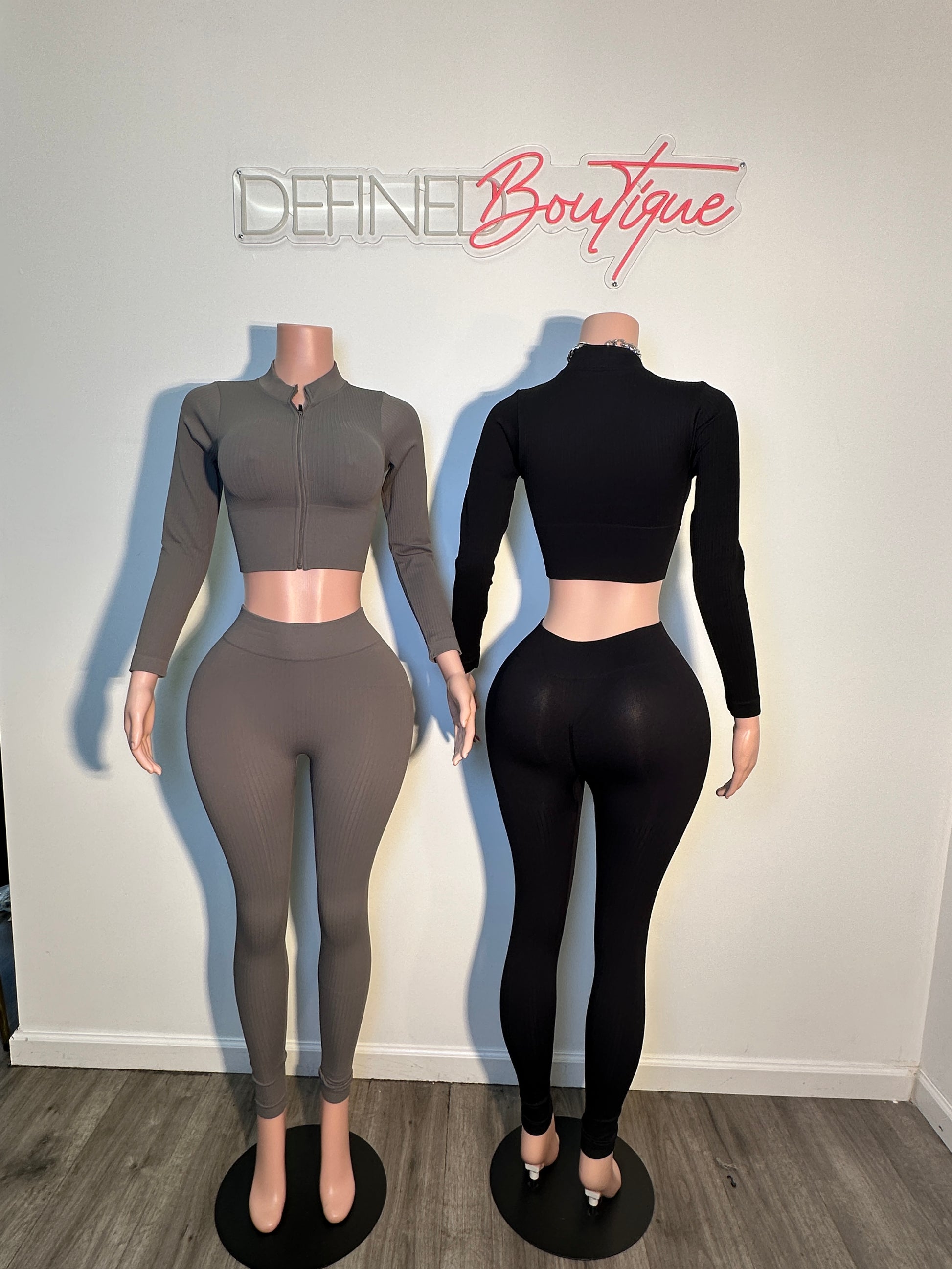 - TWO PIECE SET - 2-WAY ZIP UP TOP - LONG SLEEVE - HIGH STRETCHY - NON-SEE-THROUGH - RIBBED SOFT FABRIC - HIGH WAIST LEGGING