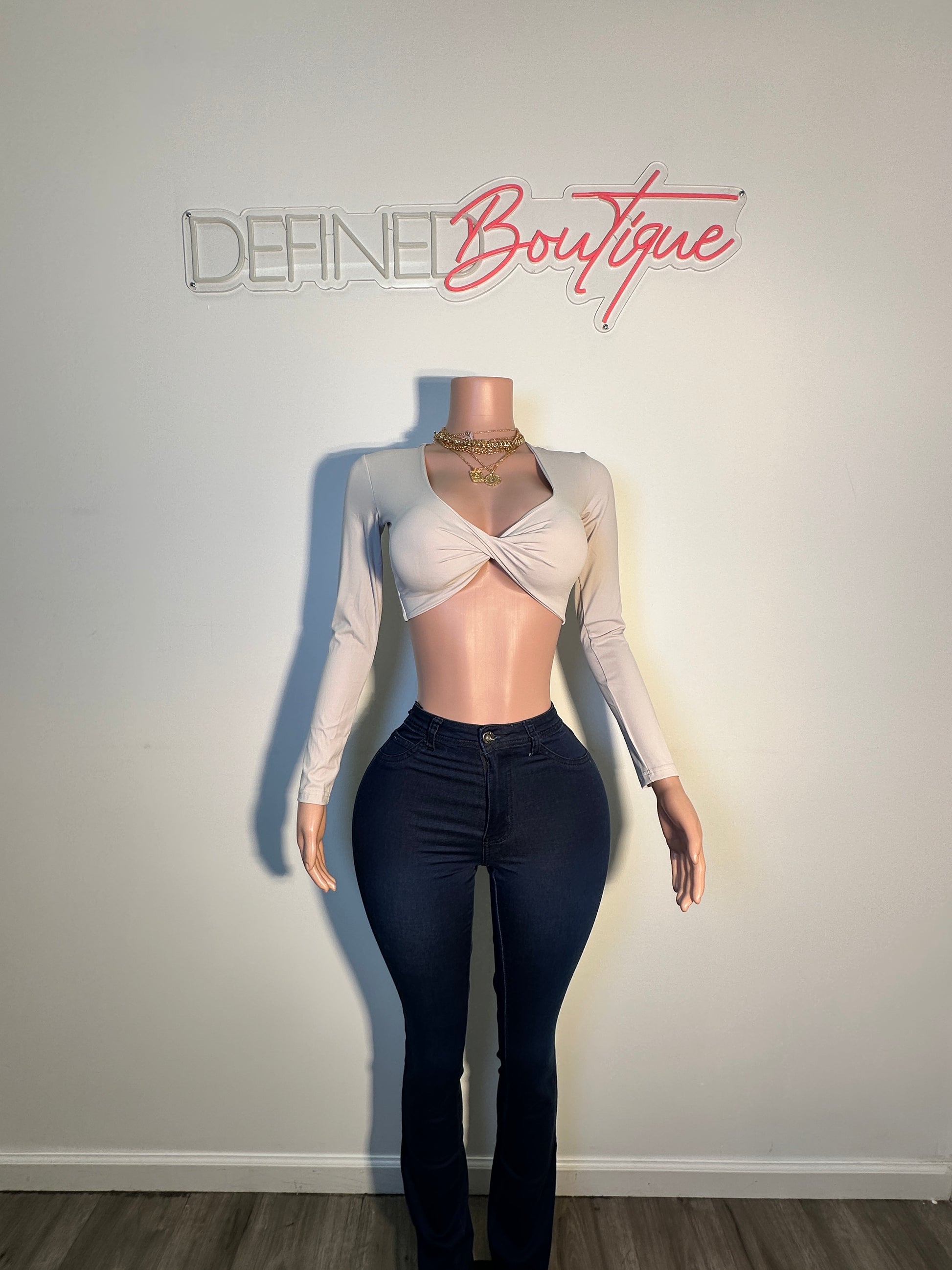 - Long Sleeve - Buttery Soft Fabric - High Stretch - Twist Knot Front, V Neck - Removable Padded Bra